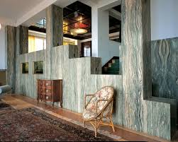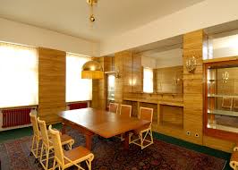 Cada habitación esta realizada con materiales lujosos como mármol, caoba, limonero, que subrayan el intento de suprimir la ornamentación artística por los efectos de los materiales nobles.