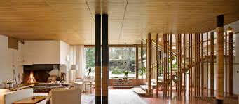 Las ventanas grandes permiten la integración del espacio interior y exterior donde el bosque parece penetrar en el interior de la casa.