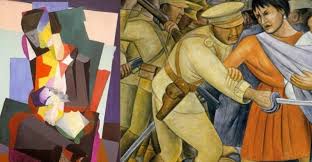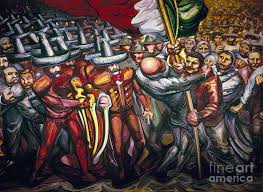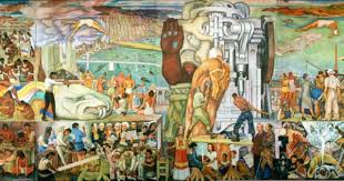 Simultaneo a todo esta el muralismo mejicano, un arte político que de forma realista y gigantescos formatos, los propios para decorar locales de instituciones públicas, no solo sirve para generar una identidad artística propia, americana, sino que con su actitud estimula el posterior desarrollo del Expresionismo Abstracto estadounidense de posguerra.