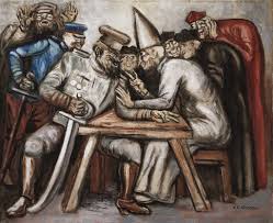 Hay que destacar también a Paul Klee, del que ya he hablado al comentar el grupo expresionista de Munich del Jinete Azul, pero que madura su mejor obra precisamente durante los años veinte y treinta, cuando participa de las investigaciones formales en la Escuela de la Bauhaus, dando a su obra su característico toque geométrico, que tras la clausura de la Escuela por los Nazis y su definitivo exilio a Suiza, realiza una obra muy personal y de enorme fuerza poética, con figuras alegóricas que flotan en un espacio indeterminado, a medias entre el Expresionismo y el Surrealismo