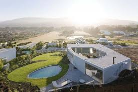 Sus parámetros se basan en los principios de la naturaleza, como lo demuestra la unidad conseguida entre estructuras orgánicas, superficies y revestimientos.