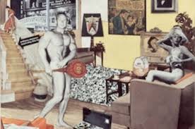 Sin embargo la primera vez que se usa el concepto Pop en una obra de arte es en Inglaterra en los 50, donde hay un par de artistas precursores, Richard Hamilton que es el que emplea el termino en un cuadro muy temprano y Edoardo Paolozzi.