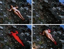 1973 En el corto Moffitt Building Piece, que ruedan ella y su hermana captan las reacciones de los peatones que pasan junto a un charco de sangre de cerdo que Mendieta vierte con discreción en la calle.