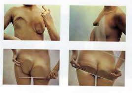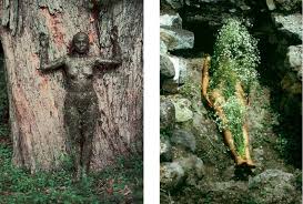 1973 En una de sus Siluetas más famosas, incorpora su cuerpo en la pieza recostándose desnuda en una vieja y olvidada tumba de piedra en México.