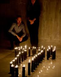 Invitó al público a la ficticia escena del crimen, donde permaneció bocabajo sobre la mesa con sangre recorriendo sus piernas y acumulándose a sus pies mientras los espectadores hablan del incidente.