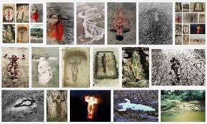 Incorpora elementos como sangre, tierra, agua y fuego, y divulga su obra a través de fotografías, películas y presentaciones en vivo.
