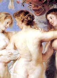 Rubens representa sus dos mujeres Isabel Brandt y Elena Fourment, mientras que la tercera es la recreación que compendia lo mejor de ambas.