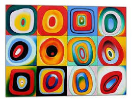 Partiendo del concepto de la esencia del color y de la relación entre forma y color, Kandinsky desarrolla una serie de ejercicios, que repite una y otra vez.