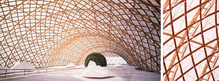 Shigeru Ban diseña el pabellón japonés para la Expo 2000 en Hannover, en colaboración con arquitecto alemán Frei Otto.
