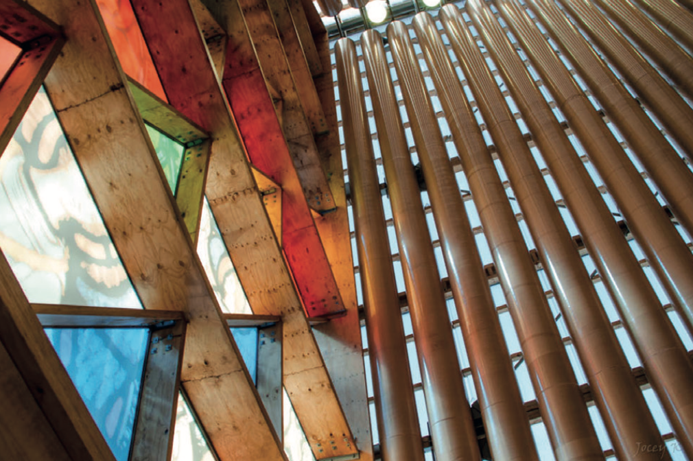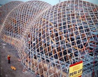 En esta construcción los tubos de papel son usados estructuralmente como columnas de concreto circulares.