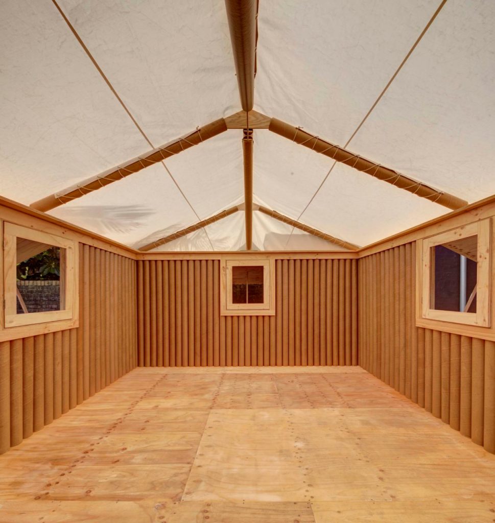 1989, Paper Arbor, primera edificación de su serie de construcciones hechas con tubos de papel.