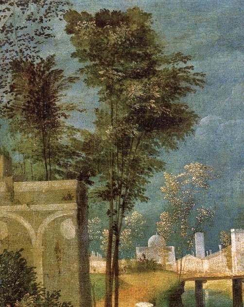 Tanto es así que Giovanni Bellini, en su últimos años como artista, adapta su arte a lo que consigue su discípulo, y Tiziano, en sus primeros cuadros, muestra lo aprendido de Giorgione. Tanto, que no es fácil distinguirlos.