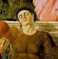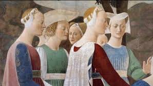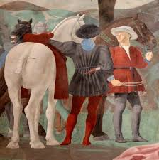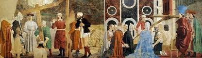 En las escenas de la Legenda de la Vera Cruz, en San Francisco (Arezzo), Piero della Francesca sigue una secuencia establecida por La Legenda Dorada.