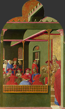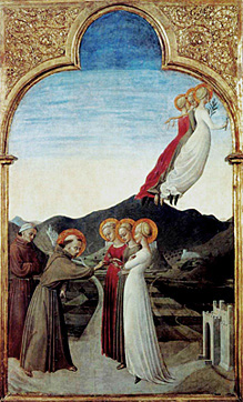 1437 y 1444, el artista participa en la ejecución del gran retablo a dos caras de la iglesia de San Francisco en Sansepolcro (Arezzo), ahora desmantelado, que representa en la portada, o lado de la congregación, la Virgen y el Niño con San Antonio. Abad , San Juan Evangelista (Musée du Louvre, París) y San Juan Bautista y el Beato Ranieri Rasini (Biblioteca Berenson, Villa I Tatti, Florencia); y en el lado del coro, San Francisco en éxtasis (también Biblioteca Berenson, Florencia), ocho historias de la leyenda de San Francisco (National Gallery, Londres; Musée Condé, Chantilly), la Anunciación (Colección Robert Lehman, Museo Metropolitano de Arte, Nueva York) y elCrucifixión (Museo de Arte de Cleveland), así como otras piezas más pequeñas en varias colecciones.