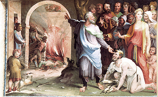 En este pavimento se observa cómo Beccafumi hace innovaciones técnicas, por ejemplo en las figuraciones dedicadas a Elías, Moisés, Ajáb y Melquisedec.