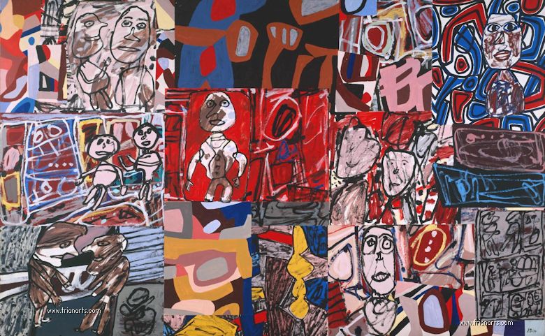 1962 produce una serie de obras en las cuales se limita a sí mismo con los colores rojo, negro, blanco y azul.