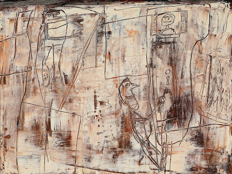 Muchos de los trabajos de Dubuffet son realizados con óleos, utilizando un lienzo reforzado con materiales tales como arena, alquitrán y paja, otorgándole al trabajo una inusual superficie texturada.
