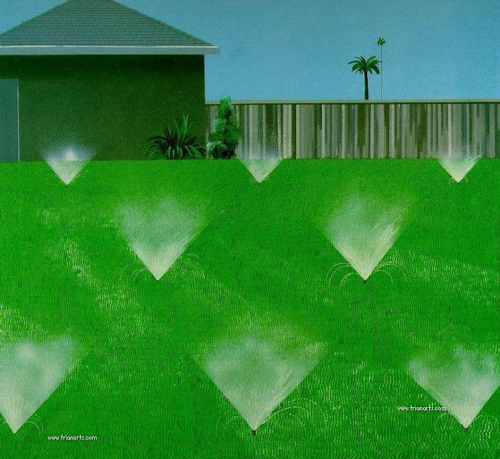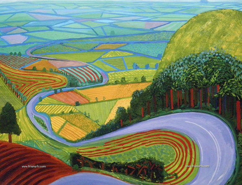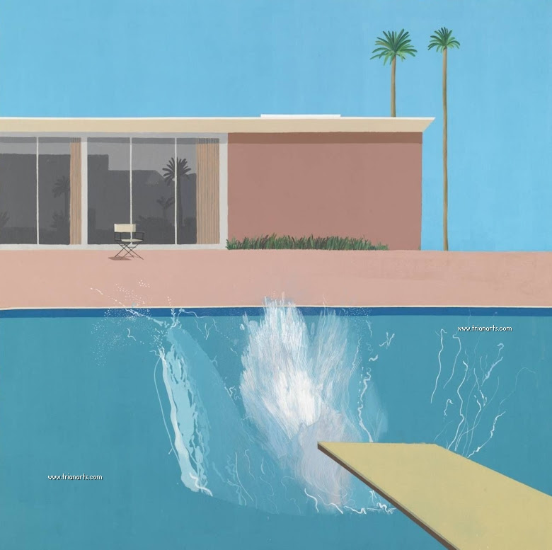 1967 David Hockney pinta El gran chapuzón, una imagen de una piscina de California en un día soleado, con un estilo cercano.