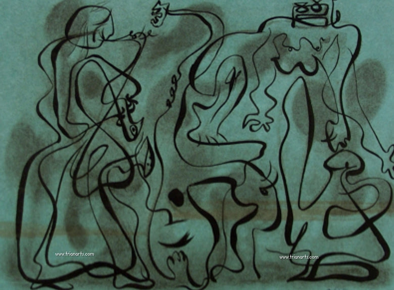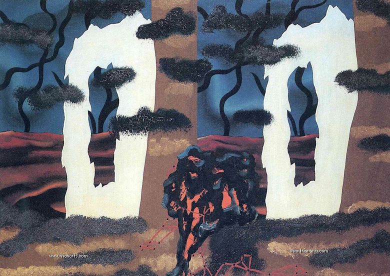 André Masson emplea técnicas de dibujo automático sin control consciente, se priva de comida o sueño y consume drogas para escapar de la racionalidad de la mente.