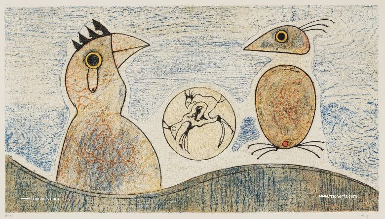 Joan Miro, en sus cuadros combina símbolos abstractos con una iconografía muy personal que incluye pájaros, mujeres, flores, luna.