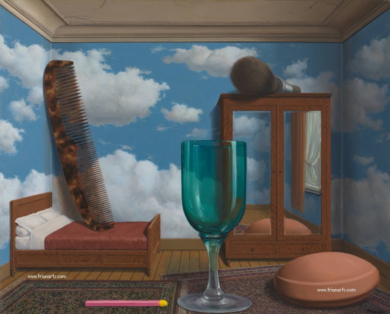 Pero mientras que en las obras surrealistas las imágenes emergen desde el subconsciente, llevarlas al lienzo supone disciplina, control y dominio de técnica.