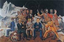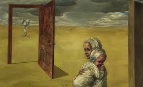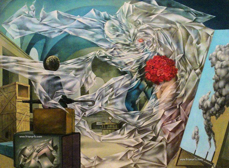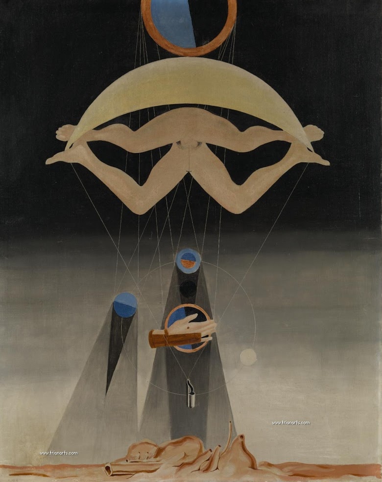 1922 se muda a París, comenzando a pintar obras surrealistas, con figuras solemnes figuras humanas