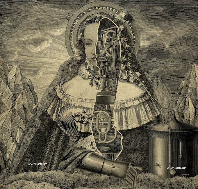 Se afinca en Colonia y comienza a trabajar en el collage, que hace a base de recortes de grabados antiguos.