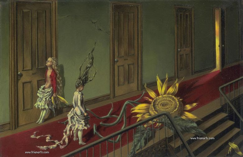 Sus primeras obras están dentro de la figuración onírica e inspiradas por las fantasías de pesadillas infantiles.