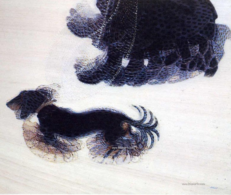 Balla se une al grupo en 1910, firmando La pittura futurista Manifesto técnico, aunque no expone con ellos hasta 1912, con su obra Dinamismo de un perro con una correa.
