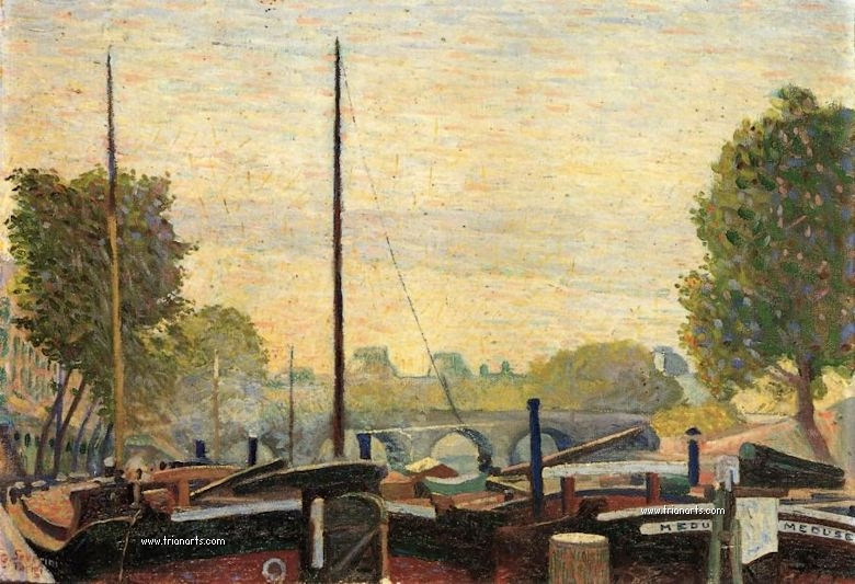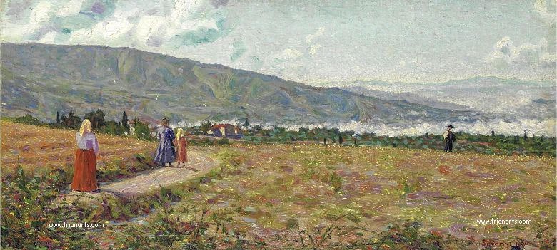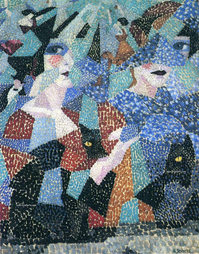 1900 conoce al pintor Umberto Boccioni con quien visita el estudio de Giacomo Balla, tras lo que se introducen en el Divisionismo, estilo que continúa realizándo en París desde 1906, y que tiene gran influencia en sus primeros trabajos y en su pintura futurista de 1910 a 1911.