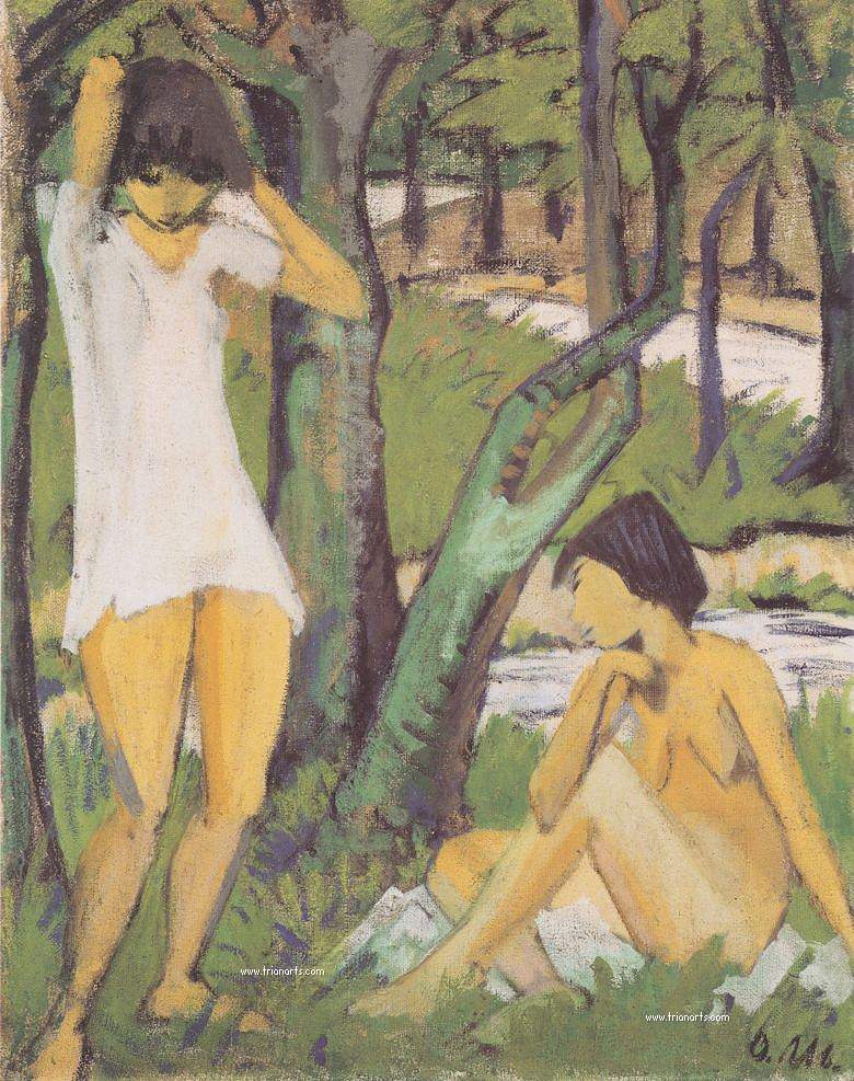 1910 es el último artista en incorporarse al movimiento Die Brücke, que fundado en Dresde, por los estudiantes de arquitectura, Ernst Ludwig Kirchner, Fritz Bleyl, Erich Heckel y Karl Schmidt-Rottluff, reune a artistas adscritos al Expresionismo.