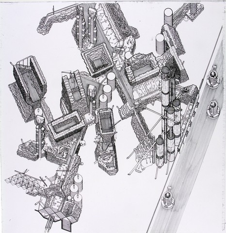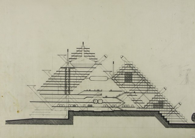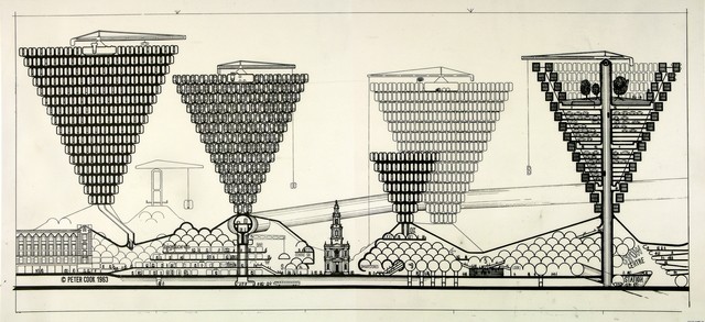 A primera vista, la utopía urbana de Cook se parece mucho al Centro Pompidou de Renzo Piano y Richard Rogers (1977) o al diseño no construido de Norman Foster para un centro cívico y un intercambiador de transportes de Hammersmith, en el oeste de Londres (1979).
