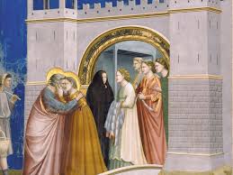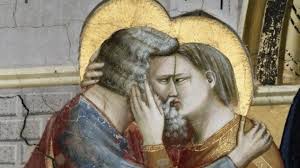 Hay dos escenas de beso en el rostro, una de amor, donde los esposos, San Joaquín y Santa Ana se encuentran en la Puerta Dorada de Jerusalén, y el beso con el que Judas vende a Cristo en el Huerto de los Olivos.