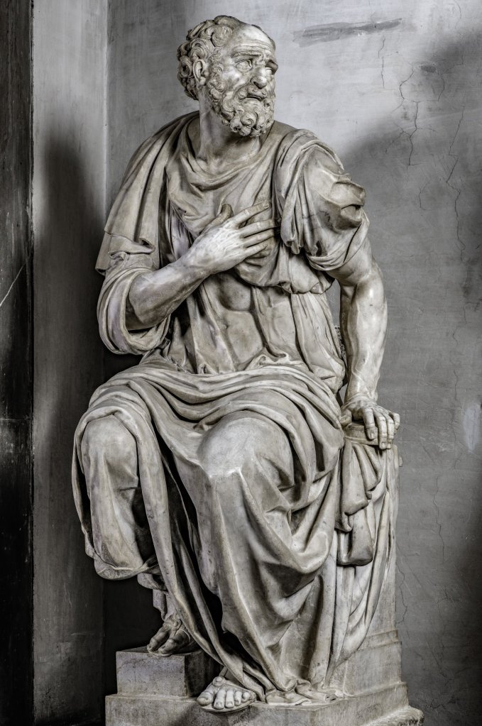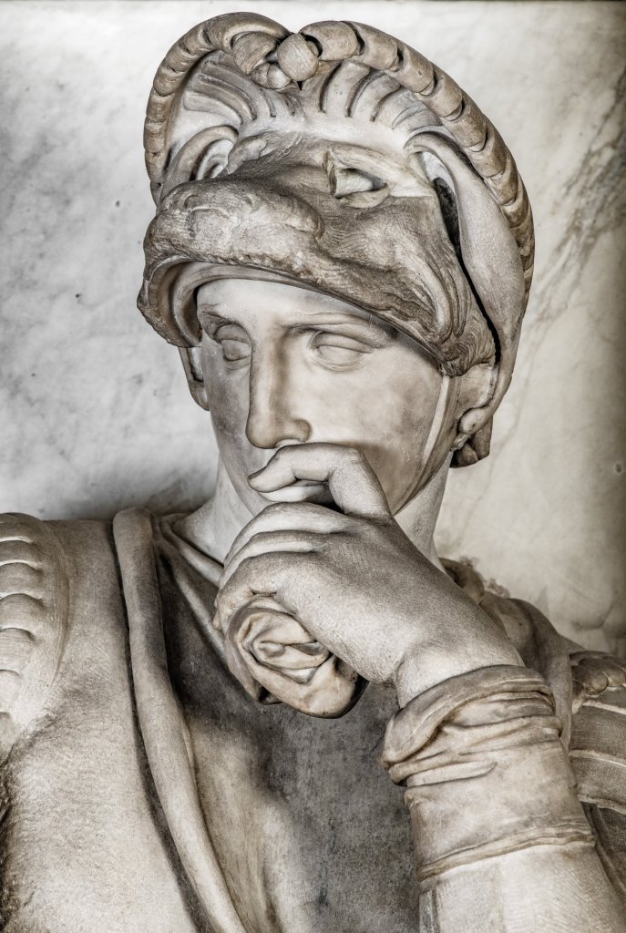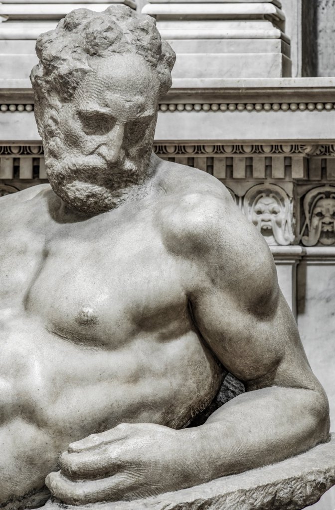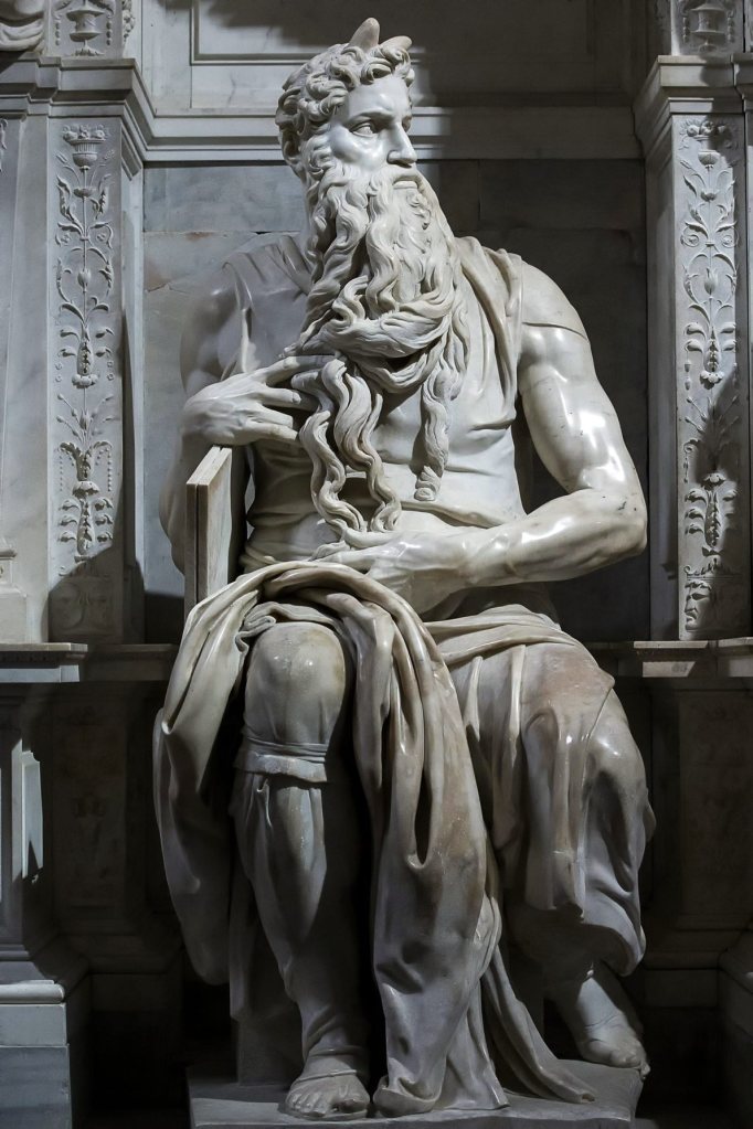 Esculpe con este fin las dos figuras de los Esclavos y el Moisés, que reflejan una atormentada energía, la terribilitá de Miguel Ángel.