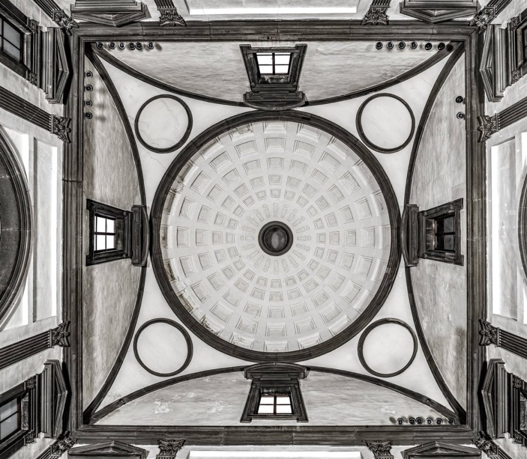 Una grandiosa estructura arquitectónica pintada, inspirada en la forma real de la bóveda.