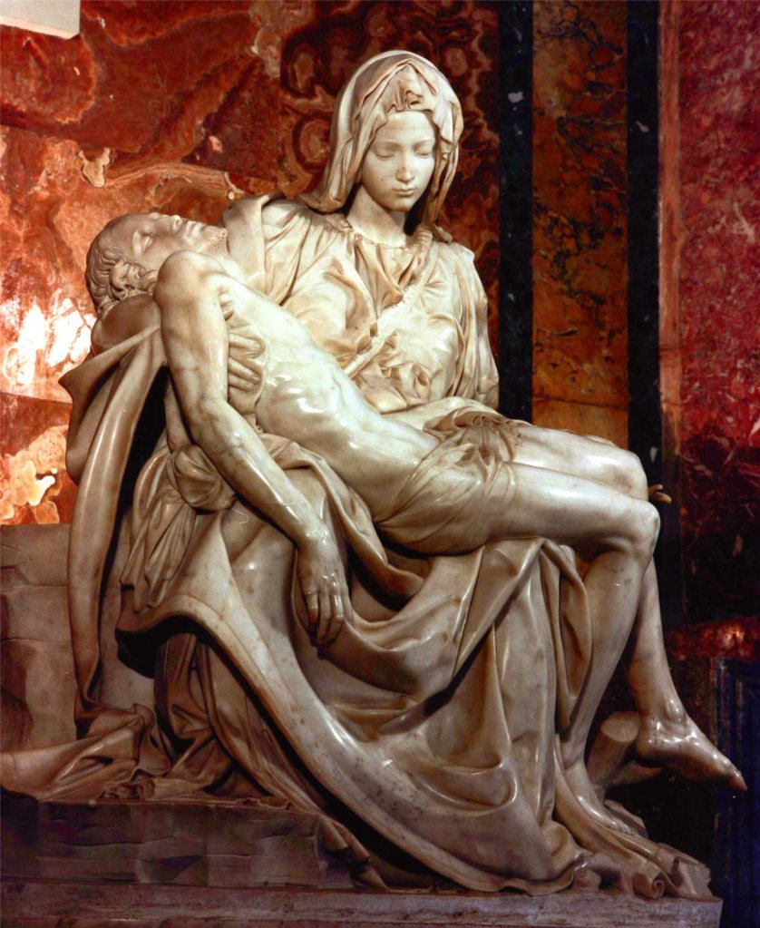 1496, talla la Piedad del Vaticano, tiene 23 años de edad, después de tallar el Bacus del Bargello, al poco hace el Tondo Pitti.