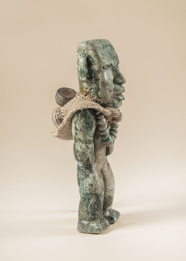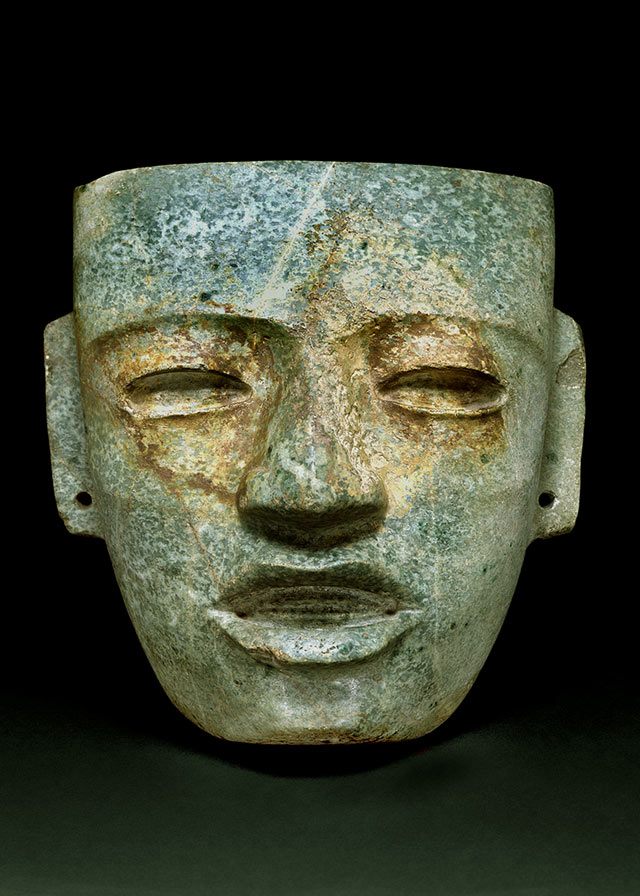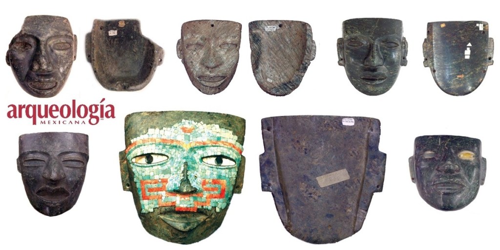Entre estos se encuentran varias máscaras, con frecuencia de rostros estandarizados, elaboradas con arcilla o talladas en piedra como el jade o el basalto, y posteriormente pulidas y adornadas con conchas u obsidiana.