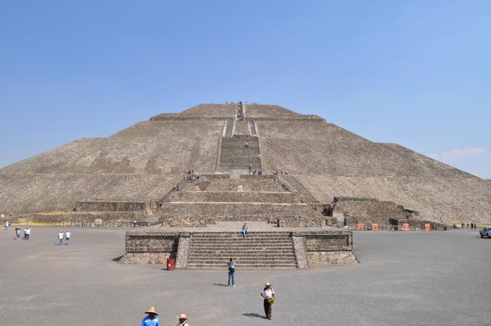La otra civilización se establece en la ciudad de Teotihuacan, en la región central de Méjico y en su punto álgido hacia el 450 d.C. llega a tener una población de mas de 150000 habitantes y gobierna gran parte de América Central.