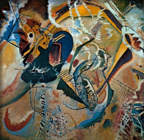 Kandinsky encuentra un paralelismo entre el proceso artístico y un cataclismo, y describe el acto de pintar como una brutal colisión entre diferentes mundos destinados al conflicto con el fin de crear un mundo nuevo llamado obra.