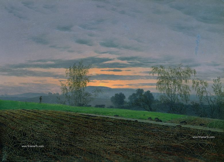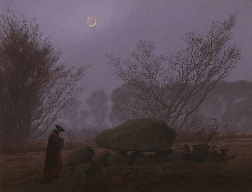 Friedrich abre una vía de intensa espiritualidad en sus campos de Pomerania, donde hay melancolía y sentimiento religioso.