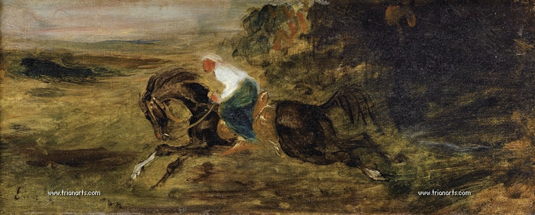 Delacroix es, ante todo, un colorista que prefiere retratar las pasiones y el movimiento mediante expresivas pinceladas.