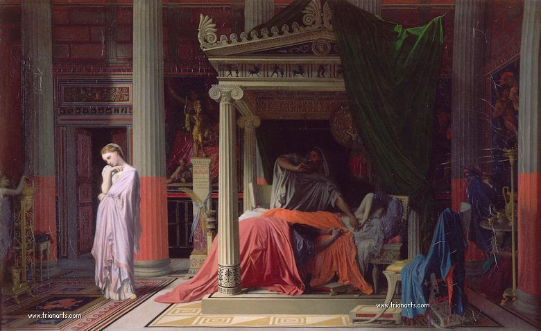 En medio de todo ese horror, el rey esta reclinado, lánguido impasible a los gritos y suplicas de quienes le rodean.