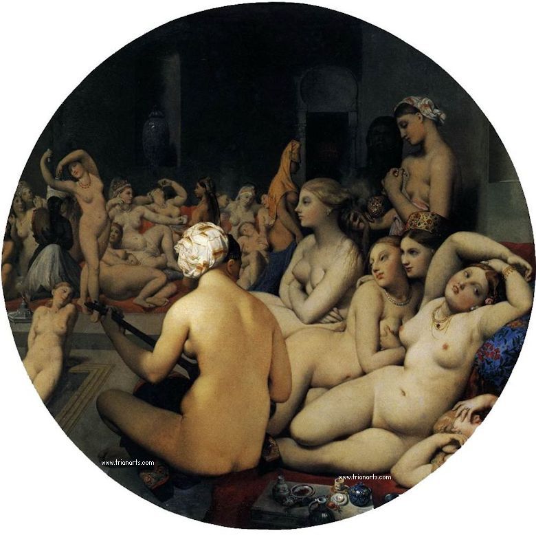 Recurre a los relatos sobre Oriente Medio de su amigo Charles Emile Champmartin y a los grabados de India de William Daniel, de donde extrae detalles arquitectónicos.