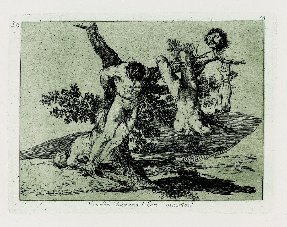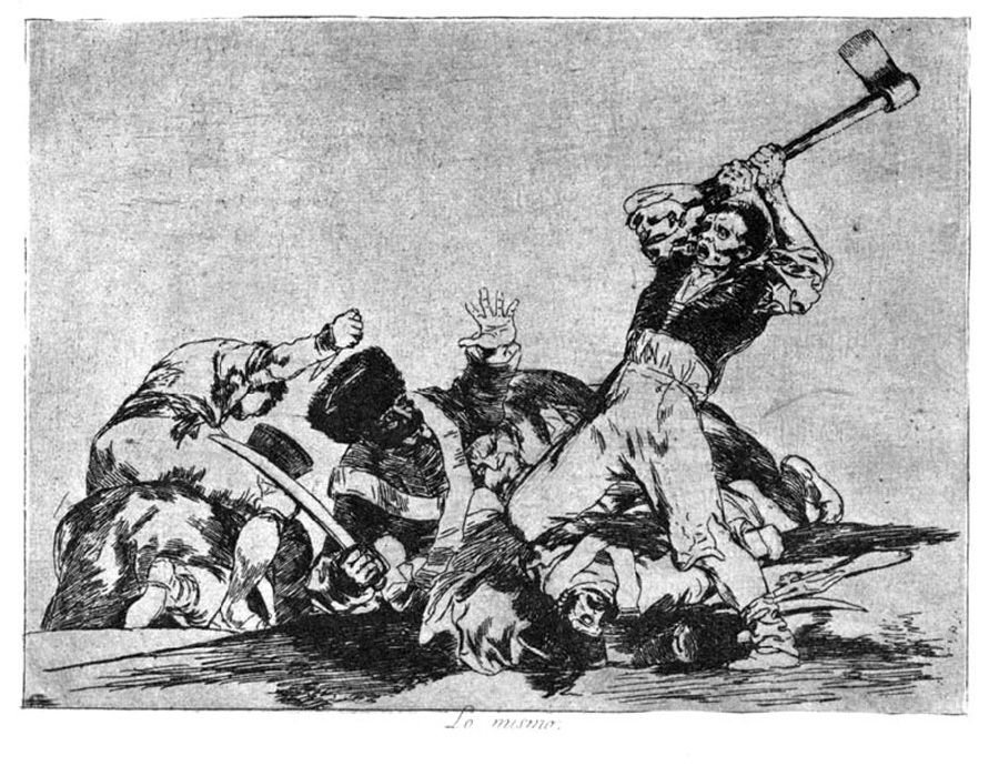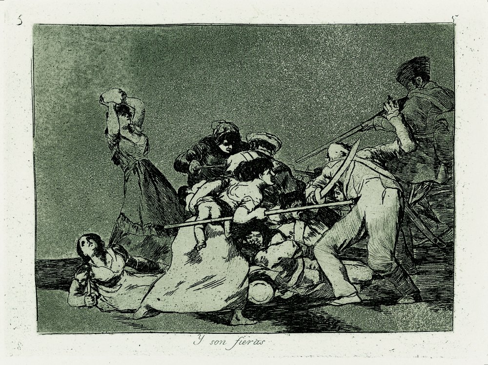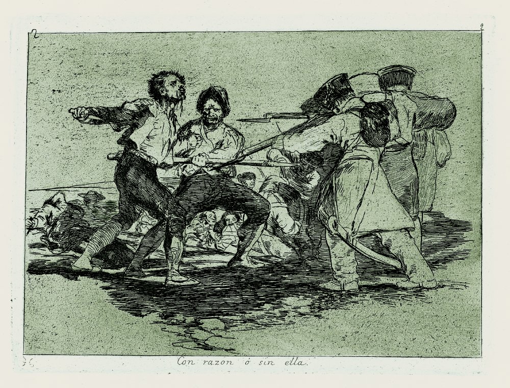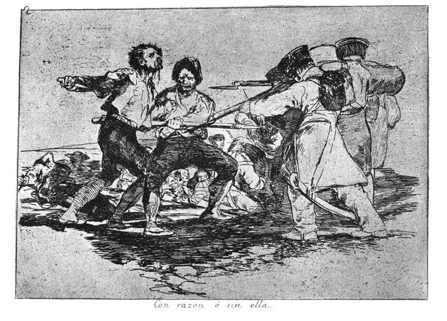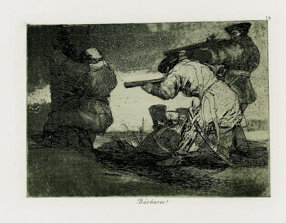Del mismo modo que el artista francés Goya incluye unas breves secuencias narrativas en Los desastres de la guerra para destacar la futilidad del ciclo de la violencia.