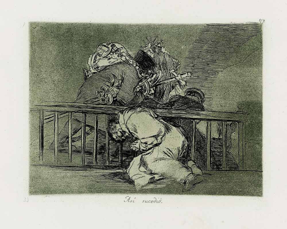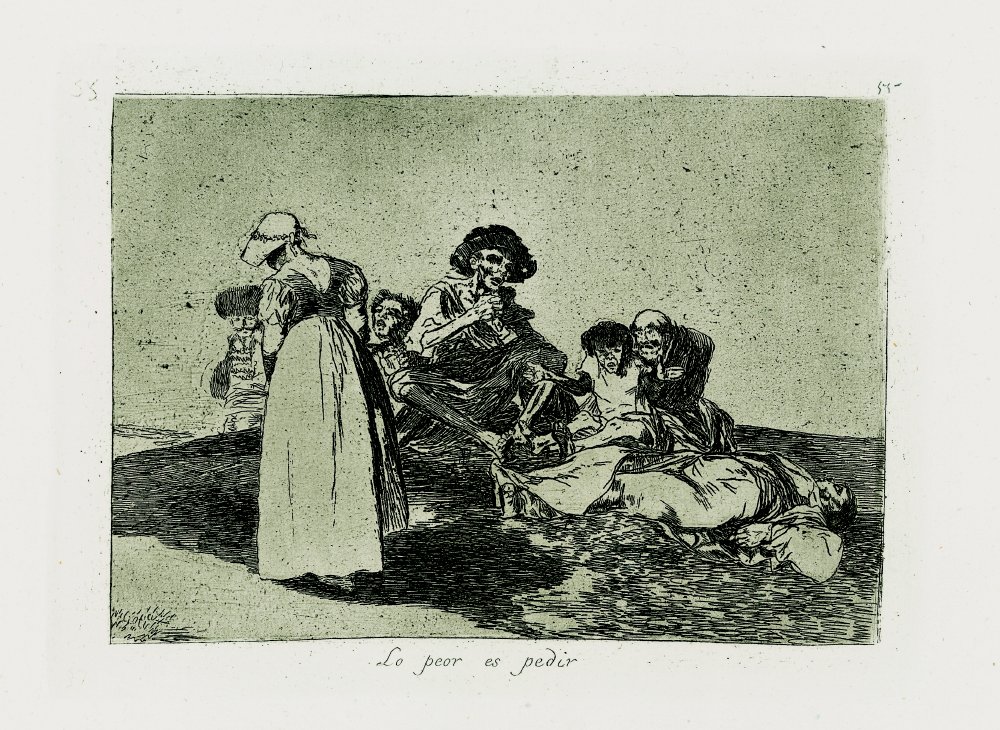 El hecho de que Goya este dispuesto a desmontar y reutilizar las planchas de alguno de sus trabajos de aguatinta más brillantes, debido a la escasez de materiales consecuencia de la guerra, demuestra su compromiso con la causa.