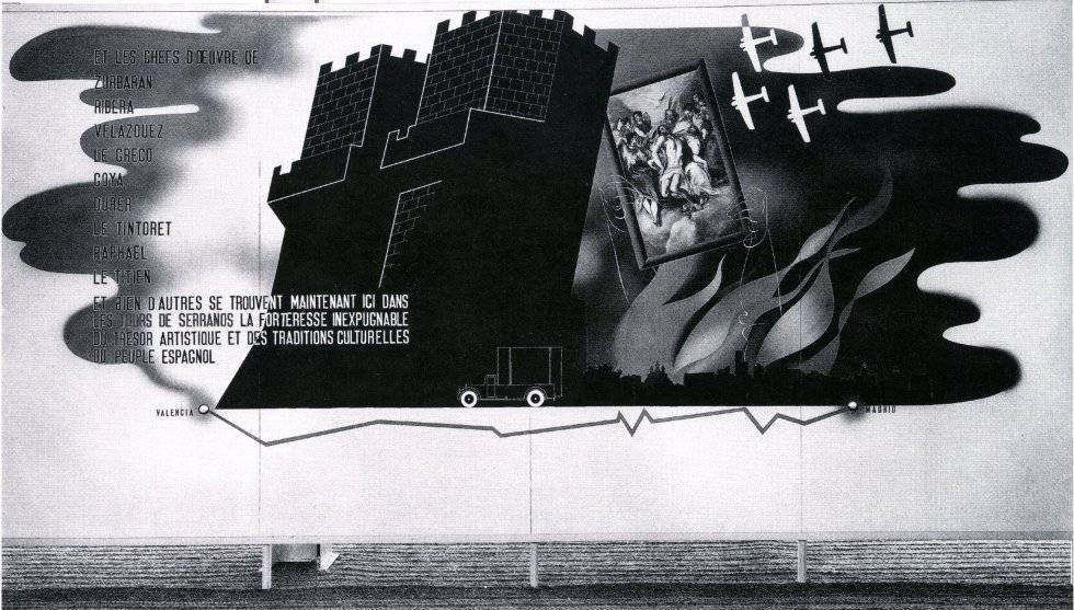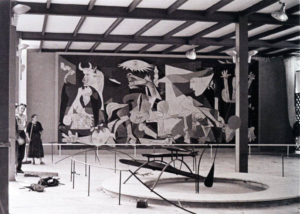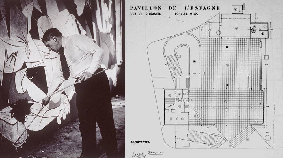 Maqueta del pabellón de España en la Exposición Internacional de París, 1937.Mientras Picasso trabajaba a toda máquina en el taller de la Rue des Grands-Augustins, las obras también avanzaban con retraso en la parcela asignada al Gobierno republicano en el Trocadero, a los pies de la Torre Eiffel. Allí tenía como vecino al neoimperialista pabellón alemán diseñado por Albert Speer, el arquitecto de Hitler, que a su vez competía en altura, frente a frente, con el soviético de Borís Iofán. En un acto típico de la diplomacia de los años treinta, ambos proyectos fueron galardonados ex aequo con la medalla de oro. La expo de París se inauguró el 25 de mayo. El pabellón español lo hizo el 12 de julio. Los retoques duraron hasta final de ese mes. Pese a la calculada tibieza de las potencias europeas, el objeto del proyecto comisariado por el filósofo José Gaos no era otro que recabar el apoyo internacional en defensa de la República.Mientras Picasso trabajaba a toda máquina en el taller de la Rue des Grands-Augustins, las obras también avanzaban con retraso en la parcela asignada al Gobierno republicano en el Trocadero, a los pies de la Torre Eiffel. Allí tenía como vecino al neoimperialista pabellón alemán diseñado por Albert Speer, el arquitecto de Hitler, que a su vez competía en altura, frente a frente, con el soviético de Borís Iofán. En un acto típico de la diplomacia de los años treinta, ambos proyectos fueron galardonados ex aequo con la medalla de oro. La expo de París se inauguró el 25 de mayo. El pabellón español lo hizo el 12 de julio. Los retoques duraron hasta final de ese mes. Pese a la calculada tibieza de las potencias europeas, el objeto del proyecto comisariado por el filósofo José Gaos no era otro que recabar el apoyo internacional en defensa de la República.Un año antes, con el estallido de la Guerra Civil, el gabinete de Largo Caballero había visto en la exposición parisiense una oportunidad de difundir la causa de la España leal. De ahí el carácter eminentemente político de una muestra que aunaba propaganda, vanguardia y artes populares, y que terminó convirtiéndose en una selección efímera de grandes nombres. Para ello fue decisivo el nombramiento como embajador en Francia de Luis Araquistáin, con Max Aub como agregado cultural. Fue Araquistáin el que pensó como arquitecto en Josep Lluís Sert, un destacado discípulo de Le Corbusier que llegaría a decano en Harvard. Al mismo tiempo, las morosas autoridades de Madrid habían ofrecido el proyecto a Luis Lacasa, miembro del Partido Comunista e impulsor de la Alianza de Intelectuales Antifascistas para la Defensa de la Cultura, que en julio de ese mismo año iba a celebrar su segundo congreso en Valencia.