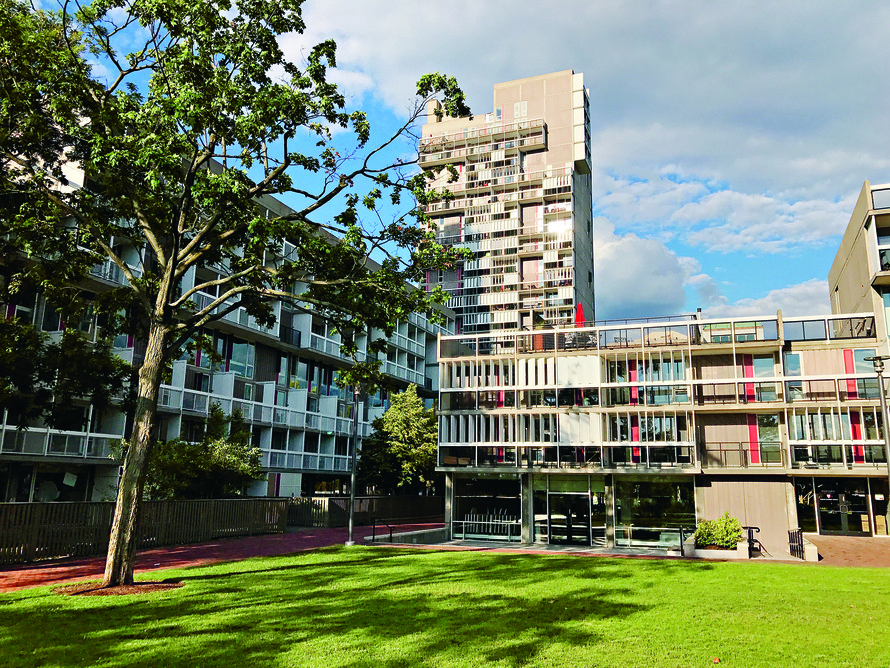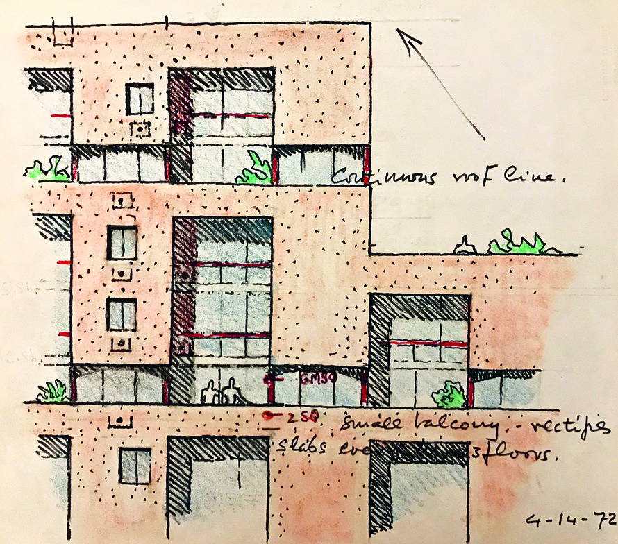 1963-1965 la residencia de estudiantes Peabody Terrace de la Universidad de Harvard en Cambridge, Massachusetts, consta de tres casas altas y varios edificios mas bajos, unidos entre sí por puentes.