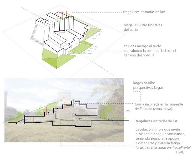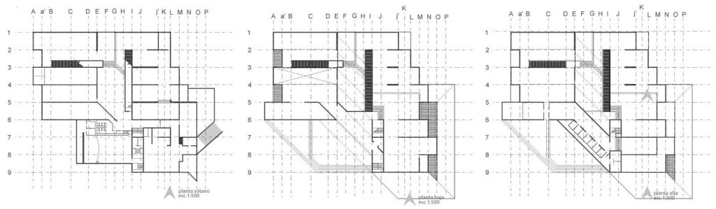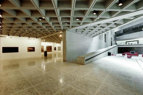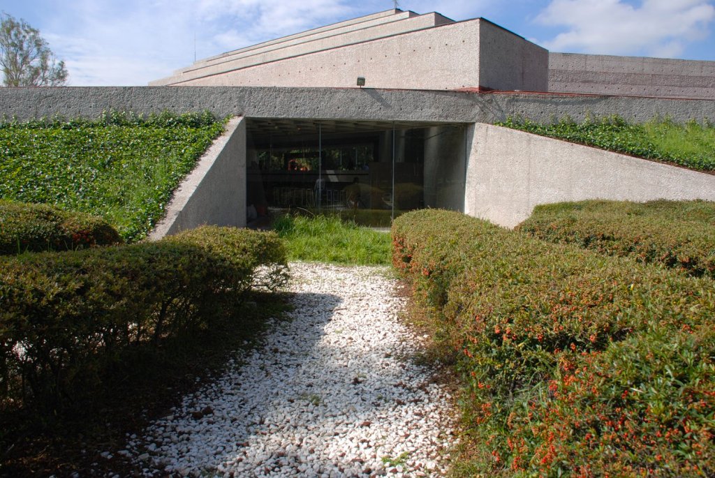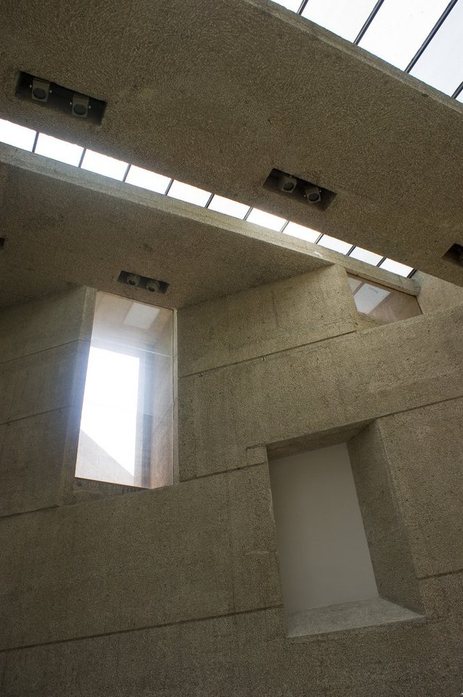 El complejo del museo esta formado por macizas paredes de hormigón que se engarzan unas con otras como enormes vigas.