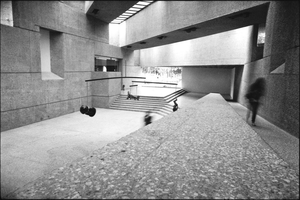 La central de Multibanco Mercantil de México en Ciudad de México (19829 juega también con la relación entre espacio público y el privado.