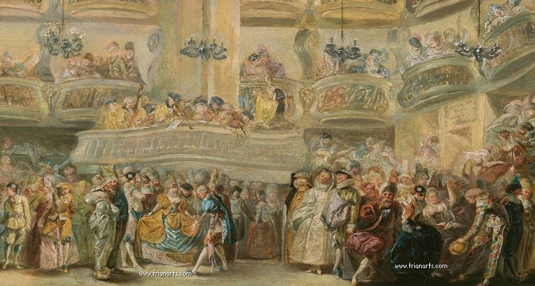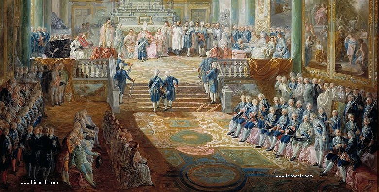 1770 durante la primera mitad de esta década, encadena estupendas pinturas, Las parejas reales (1770) Baile de mascara (1767), Ensayo de una comedia (1772) o Carlos III comiendo ante su corte (1770).